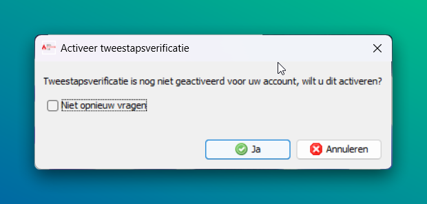 - Ja: tweestapsverificatie wordt geactiveerd.