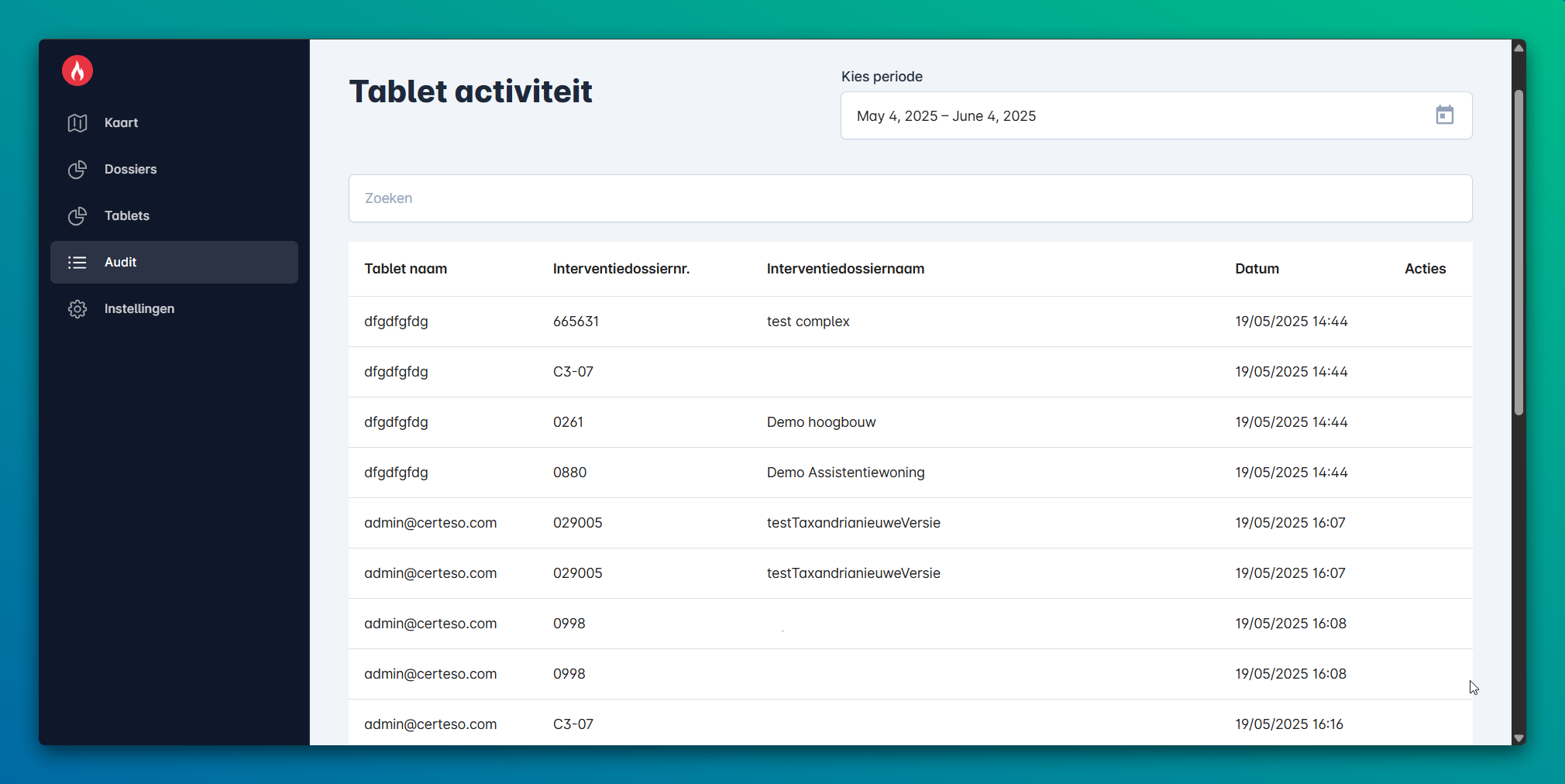 - raadplegen van dossiers via de webomgeving wordt voortaan gelogd. Er werd een nieuwe tab "Audit" toegevoegd, waarin gebruikers met de rol Admin kunnen zien welke tablets welke dossiers hebben geraadpleegd, en op welk tijdstip.