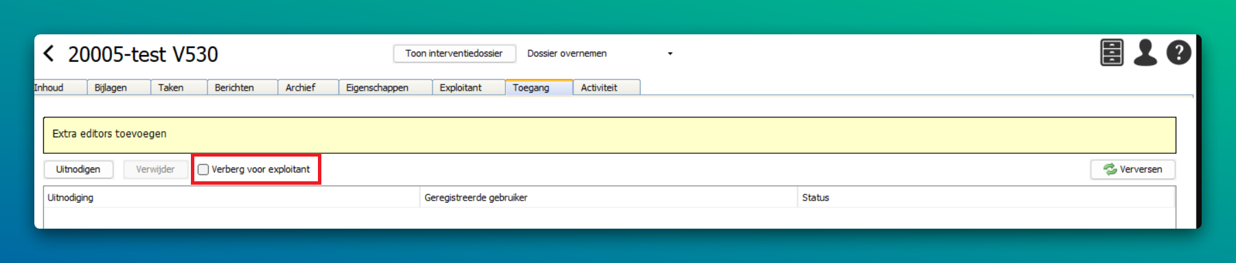 - Checkbox om het uitnodigen van editors voor exploitant uit te zetten