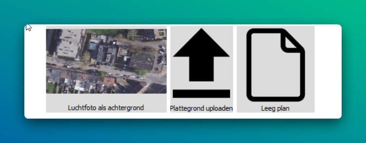 - Bij luchtfoto en liggingsplan de optie "Leeg plan" toevoegen